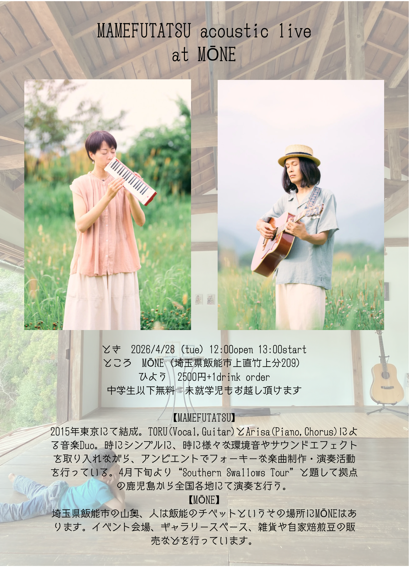 カフェ「Maru Cafe」と併設する一棟貸し宿「awai」にて演奏します。